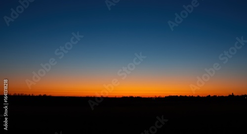 Scenic orange sunset over silhouetted trees at dusk, gradient sky