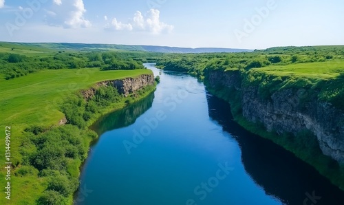 Scenic River Landscape Aerial View