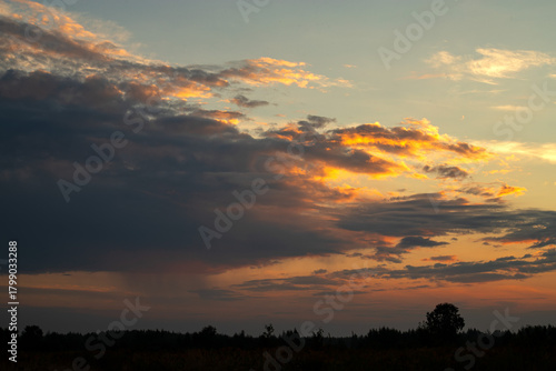 Scenic view dramatic beautiful sunset sky. Sky at sunrise or sunset in summer