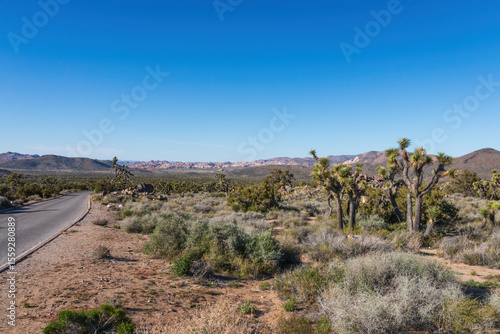 Scenic view of landscape at Joshua Tree National Park, California, USA against blue sky