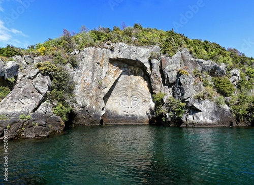 Scenic view of Maori carving at Lake Taupo New Zealand
