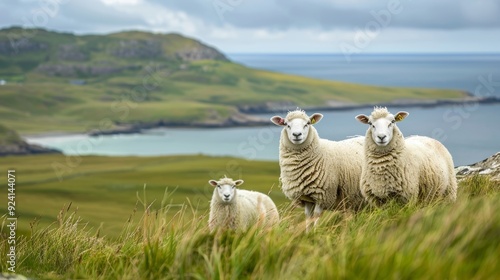 Scenic view of scottish sheep grazing in field on lewis and harris in outer hebrides, scotland