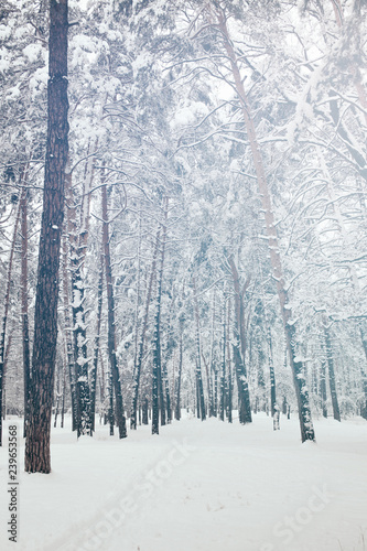 scenic view of snowy trees in winter forest