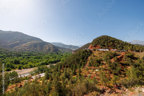 Scenic views of traditional Moroccan buildings near Sti Fadma along the Ourika River, near Marrakech, west Morocco