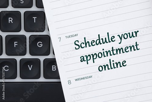 Schedule your appointment online on day planner on a keyboard