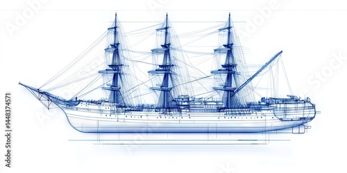 schematic of large edwardian frigate, fantasy, blueprint, construction, high detail, graphic novel art style