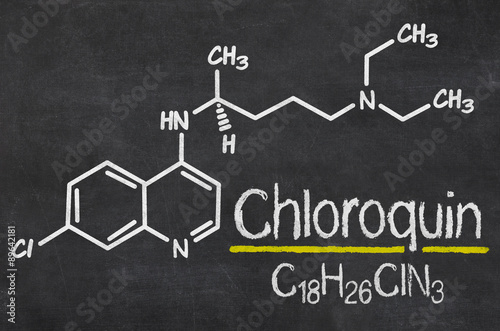 Schiefertafel mit der chemischen Formel von Chloroquin