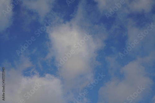 Schöner belebter lebhafter morgendlicher Himmel mit Cumulus Wolken