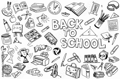 School and education doodles hand drawn sketch with symbols and objects. Education concept