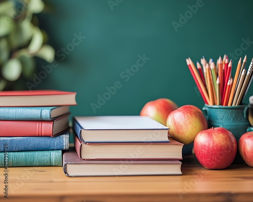 School desk with books