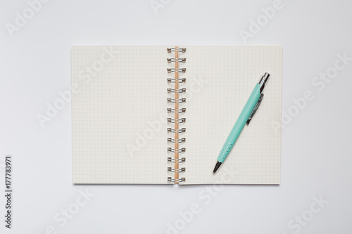 School notebook with stylish green pen
