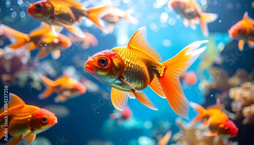 School of gold fish in aquarium