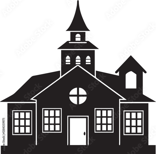 School vector illustration, School clipart, School silhouette vector black and white