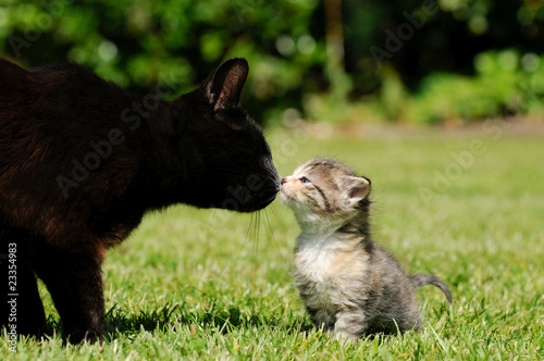 Schwarze Katze mit Kätzchen