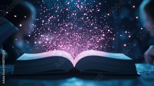Sci Fi Library or Knowledge Hub: A group of students collaborating in a virtual learning environment, surrounded by floating holographic books and interactive data visualizations.