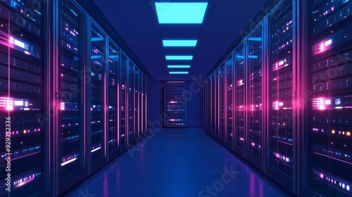 Sci Fi Style Server Corridor with Advanced Hardware and Dynamic Lighting for Technology and Innovation Themes