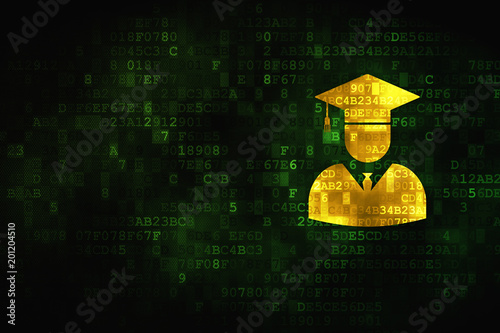 Science concept: pixelated Student icon on digital background, empty copyspace for card, text, advertising