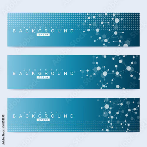 Scientific brochure design template. Vector flyer layout, Molecular structure with connected lines and dots. Scientific pattern atom DNA with elements for magazine, leaflet, cover, poster design.