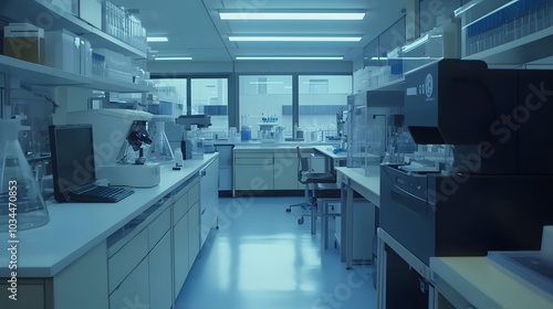 scientific experiments, Laboratory equipment and test tubes- science concept.