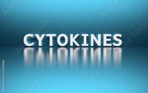 Scientific medical term - Cytokines - written in bold white letters on blue background