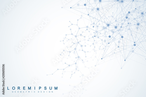 Scientific molecule background for medicine, science, technology, chemistry. Wallpaper or banner with a DNA molecules. Vector geometric dynamic illustration.