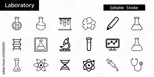 Scientific Research and Laboratory Outline Icon Collection. Experiment, Education, Medical, Discovery, Innovation, and Analysis Elements. Vector Pack.