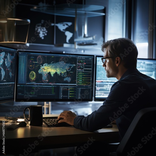 Scientist analyzing data with high precision on monitor