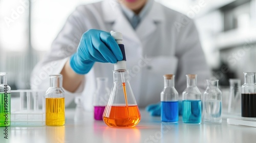 Scientist Carefully Conducting Experiment in a Laboratory Environment Performing Chemical Analysis and Research with Scientific Equipment and Apparatus