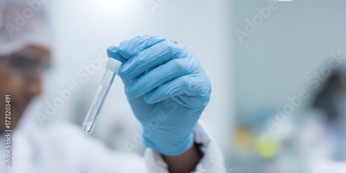 Scientist holding test tube with liquid for analysis