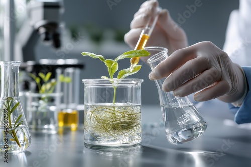 Scientist in Gloves Conducting Plant Experiment in Lab