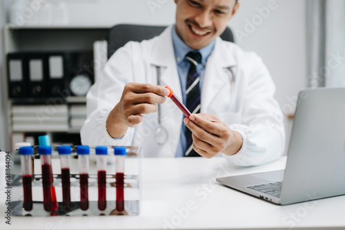Scientists conducting research investigations in a medical laboratory, a researcher in the foreground is using a microscope in laboratory for medicine.