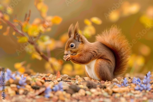 Sciurus vulgaris - Eichhörnchen mit einer Haselnuß. Beautiful simple AI generated image in 4K, unique.