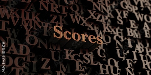 Scores - Wooden 3D rendered letters/message. Can be used for an online banner ad or a print postcard.