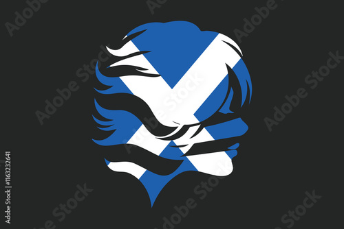Scotland flag and girl’s shape, Flag of Scotland national country symbol illustration Vector, Rectangle Scotland flag illustration, Flat vector illustration