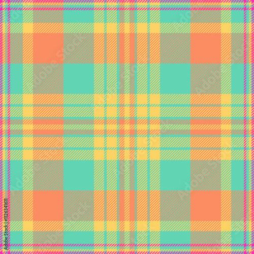 Scotland tartan seamless check, victorian plaid vector texture. Tribal textile background pattern fabric in teal and amber colors.