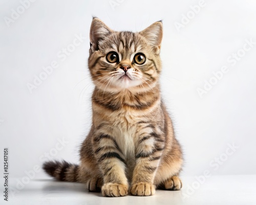Scottish Straight breed cat sitting isolated on white background looking at camera.