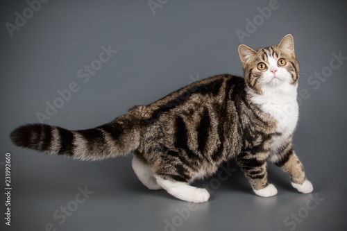 Scottish straight shorthair cat on colored backgrounds
