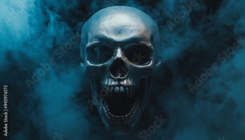 Screaming Silver Skull in Dark with Smoke and Shadows