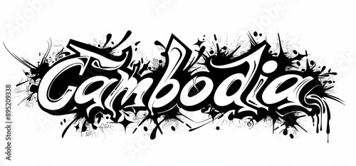 Script lettering with spray paint effect for Cambodia's country name in graffiti-style isolated on transparent background