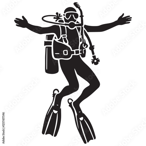 Scuba Diver Silhouette Vector Illustration with Arms Wide Open