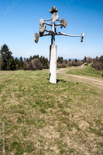 sculpture of stone tree with berries in Javorniky mountains in Slovakia
