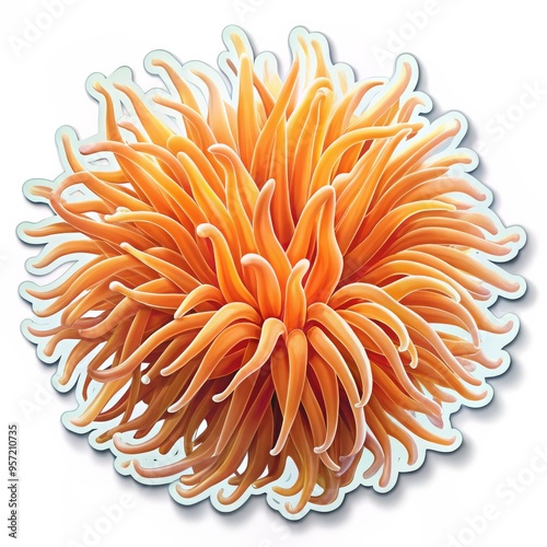 Sea Anemone Sticker, Orange Tentacles, Underwater Life, Digital Illustration, Ocean, Anemone, Marine Life