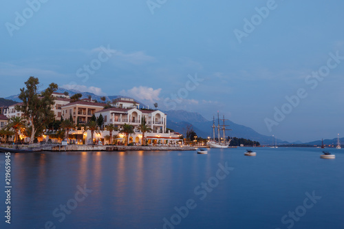 sea, city, water, night, view, architecture, panorama, landscape, sky, travel, port, town, blue, cityscape, bay, europe, boat, building, harbor, ship, urban, coast, tourism