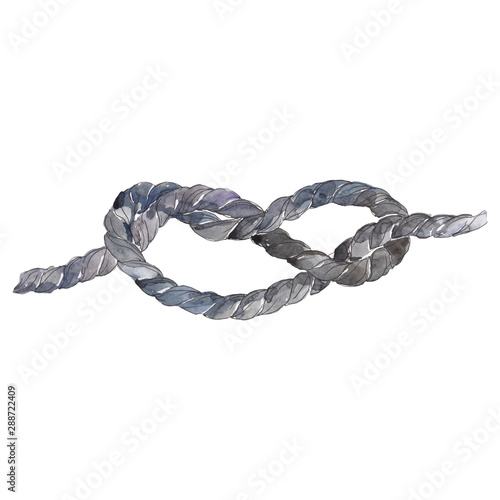 Sea knots sketch glamour illustration in a watercolor style isolated ropes element. Watercolour background set.