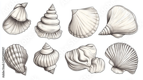 Sea marine shells hand drawn sketch vector illustration.