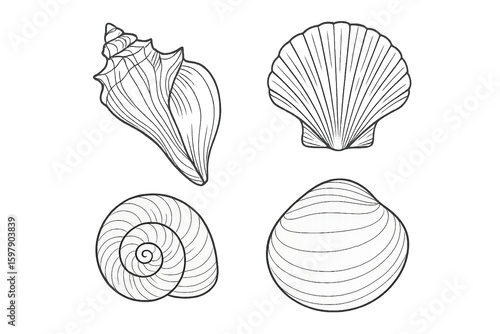 Sea Shell Collection Vector Illustration with Tropical Beach Elements