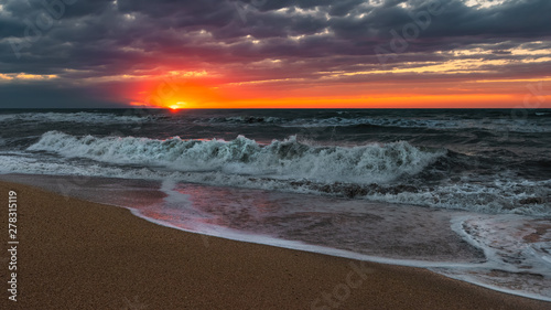Sea shore at colorfuf sunset time