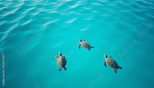 Sea Turtles Swimming in Turquoise Ocean Waters Aerial View Vacation