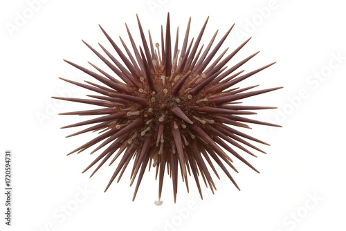 Sea urchin, a marine animal, showcasing its spiny test and sharp needles. Underwater creature on transparent background
