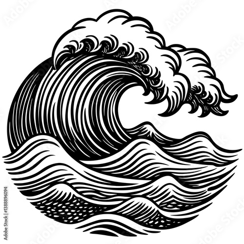 Sea Waves Sketch: Vintage Storm Wave & Ocean Tide Hand-Drawn Vector Set